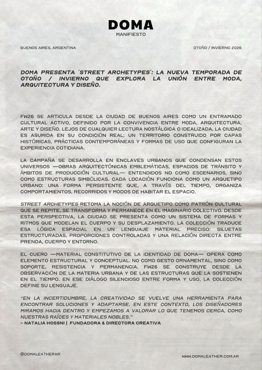Founded in Buenos Aires in 2004 by Natalia Hossni and Luciano Abitboul, DØMA sets out to seamlessly blend the timelessness traditional craftsmanship of leather through the vision of the modern design of the day-to-day woman.
