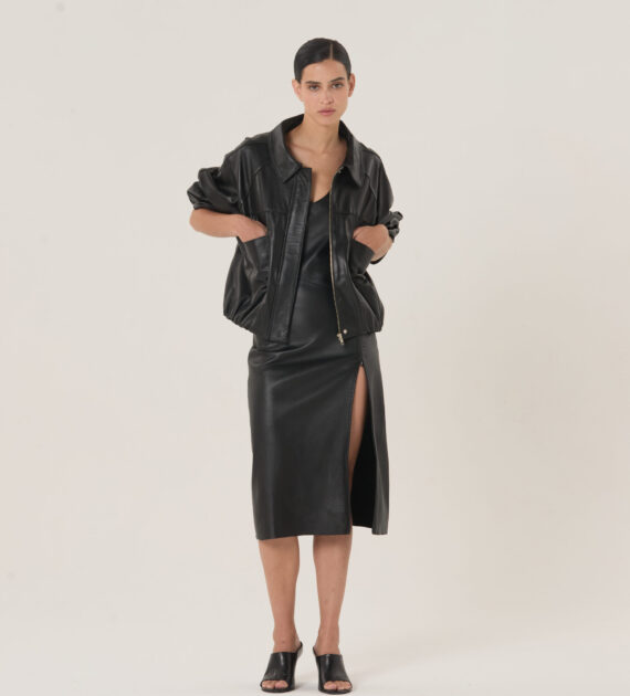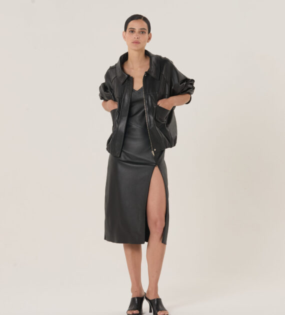 Posee tajo delantero regulable para estilizar la silueta de modo femenino.