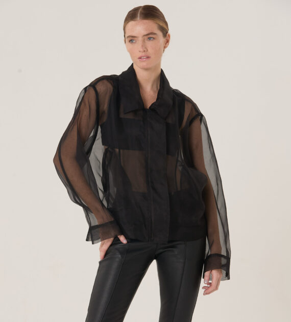 Camisa confeccionado en organza, de corte relajado y cintura levemente ceñida.