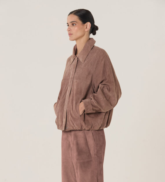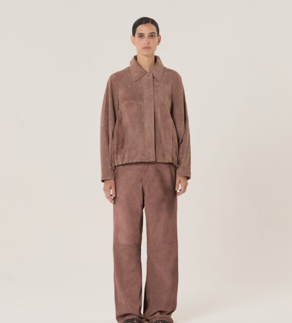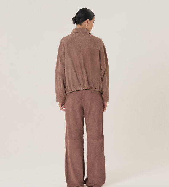 Con un cuello pronunciado, bolsillos ojal en el frente y elástico en la cintura, ésta prenda es perfecta para un look de silueta relajada y delicada a la vez.