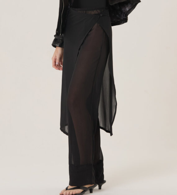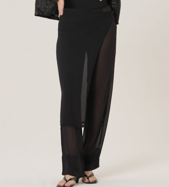 Set de pantalón confeccionado en seda, de corte recto y cintura elastizada & pareo confeccionado en gasa, de corte recto, y largo medio.