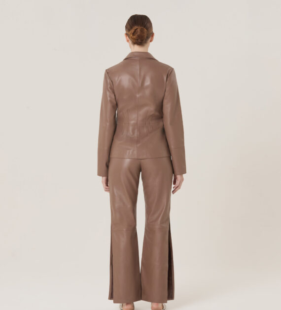 Pant de corte recto, confeccionado en cuero soft de oveja, cintura de calce medio y tajos laterales pronunciados.