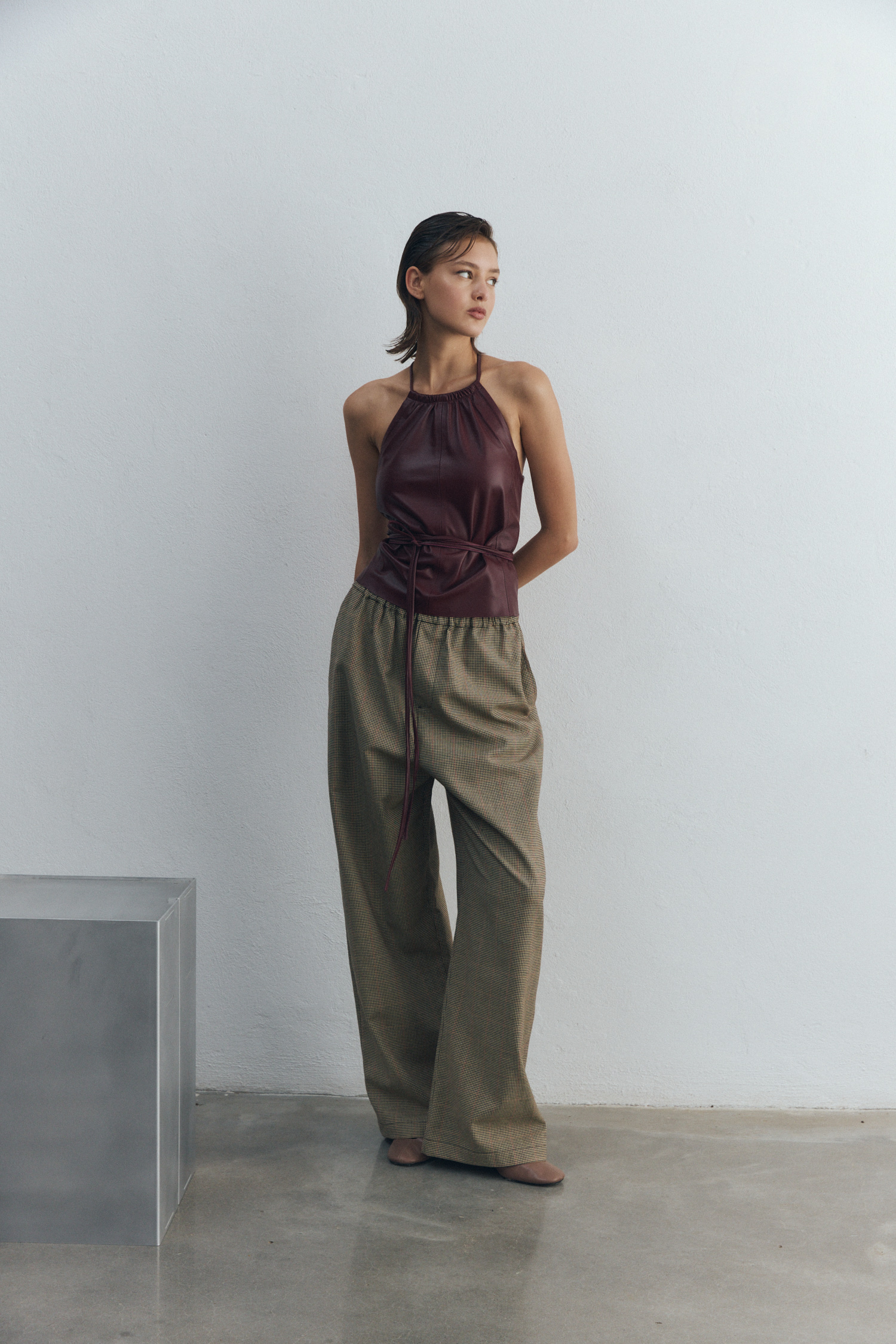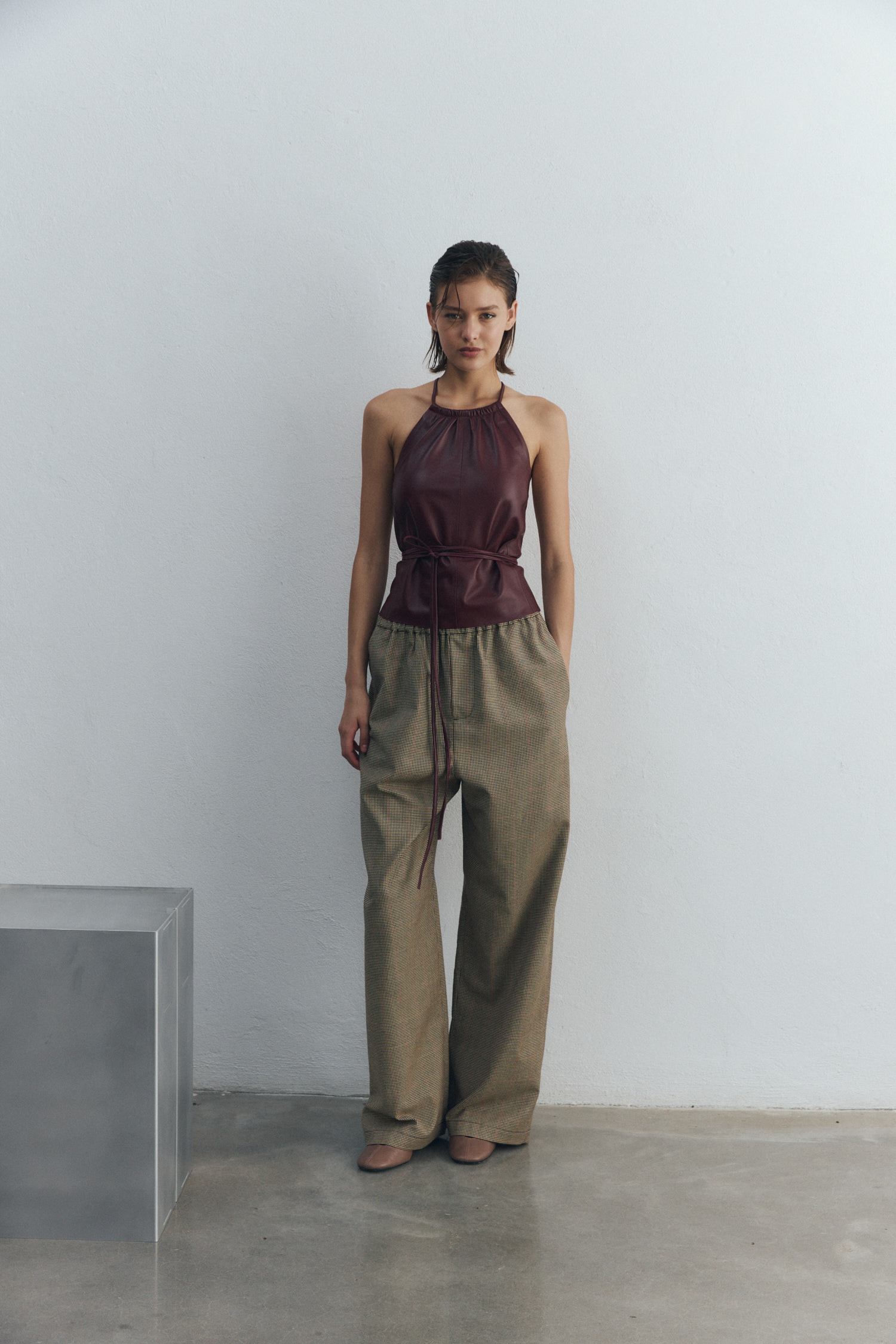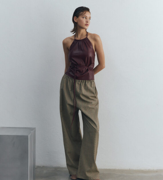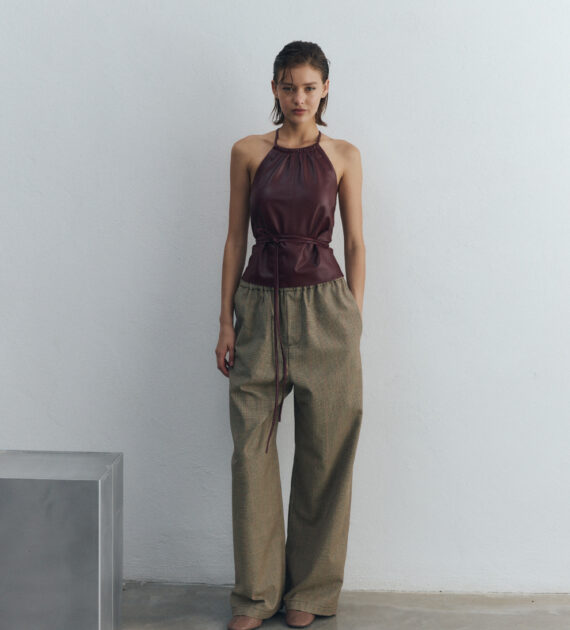 Confeccionado en cuero de oveja soft sin forrar, este top presenta múltiples usos ya que sus tirillas de cuero te permiten regular el entalle para que puedas usarlo solo, o sobre otras prendas.